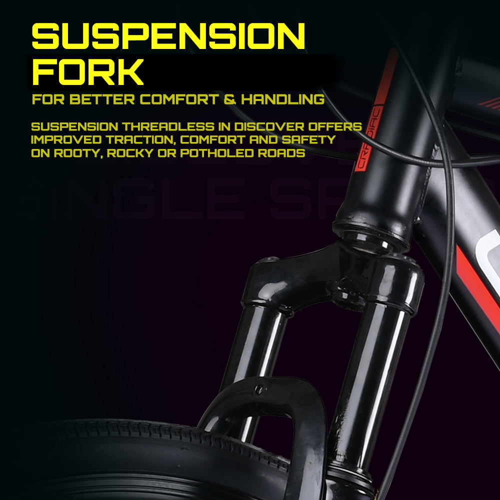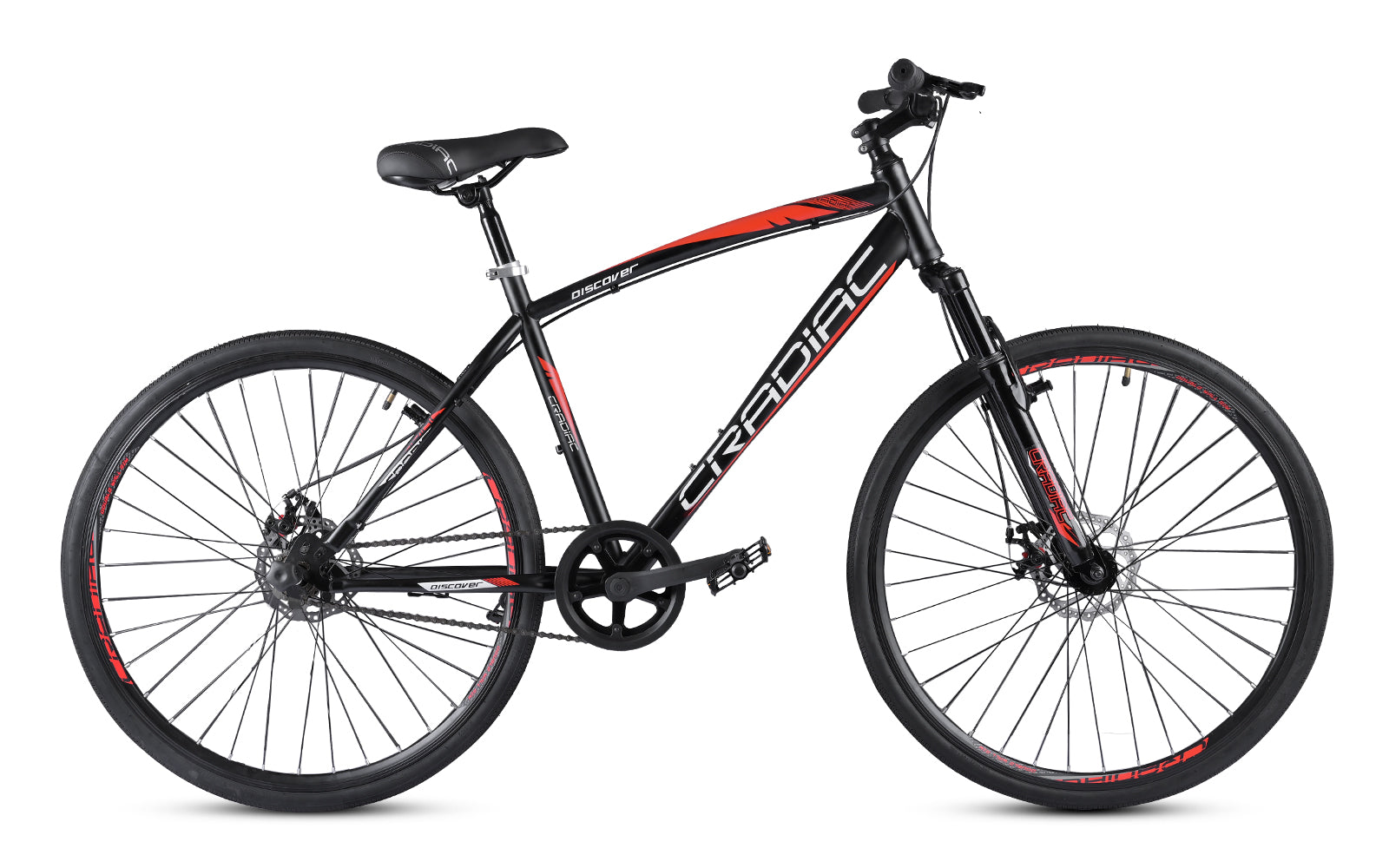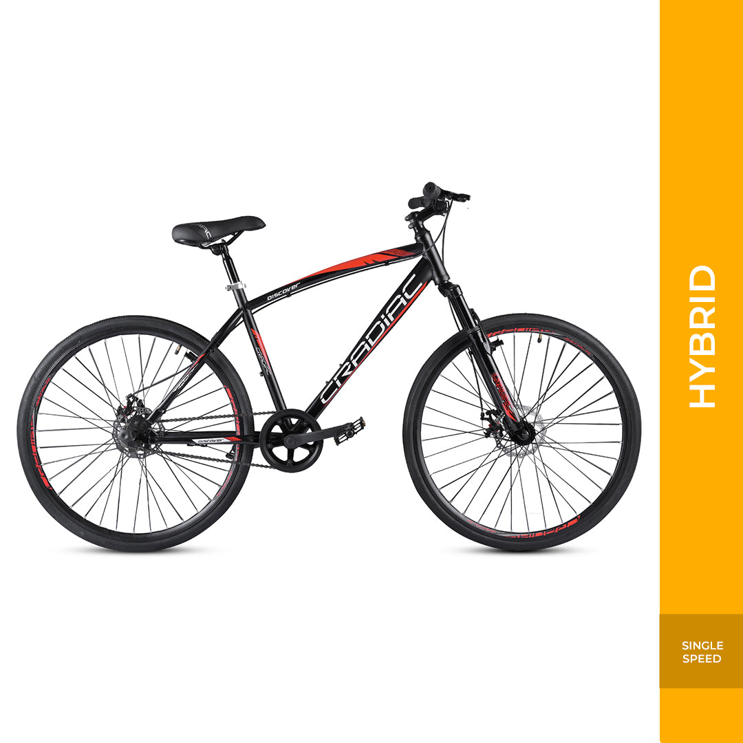 Cradiac Discover PRO Single Speed Steel High Performance Hybrid Cycles for Men with Front Suspension & Disc Brakes | Ideal for 15+ Years, Unisex, Frame Size : 18.5 Inch | 700 * 35C Tires