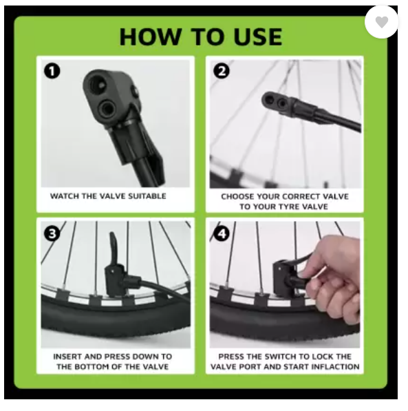 For bicycle For Inflates bicycle tyres, rafts and sports equipment such as Basketball, Soccer fast and easily Also inflates boats, pools, air bed, balloon, etc. no nozzle required to fill air in cycle and bike The ideal pump for every day use or stowing away in your vehicle. Portable and easy to use valve internals and Schrader valve internals, this easy-to-use dual pump head design makes tire inflation chores a snap. No adapters or swapping out pump head parts, simply choose the side you want, press onto the valve stem, flip the locking lever, and start pumping. The original Twin Head dual sided design makes adapters obsolete.