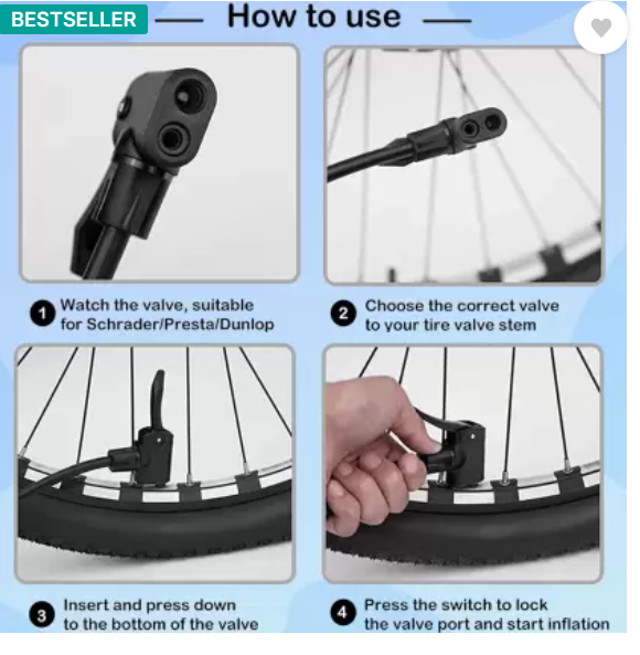 For bicycle For Inflates bicycle tyres, rafts and sports equipment such as Basketball, Soccer fast and easily Also inflates boats, pools, air bed, balloon, etc. no nozzle required to fill air in cycle and bike The ideal pump for every day use or stowing away in your vehicle. Portable and easy to use valve internals and Schrader valve internals, this easy-to-use dual pump head design makes tire inflation chores a snap. No adapters or swapping out pump head parts, simply choose the side you want, press onto the valve stem, flip the locking lever, and start pumping. The original Twin Head dual sided design makes adapters obsolete.